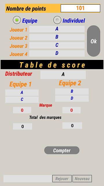 Sebuah aplikasi digunakan untuk mencatat skor setiap pemain rami dalam 2 jenis bermain talating dan yang sederhana